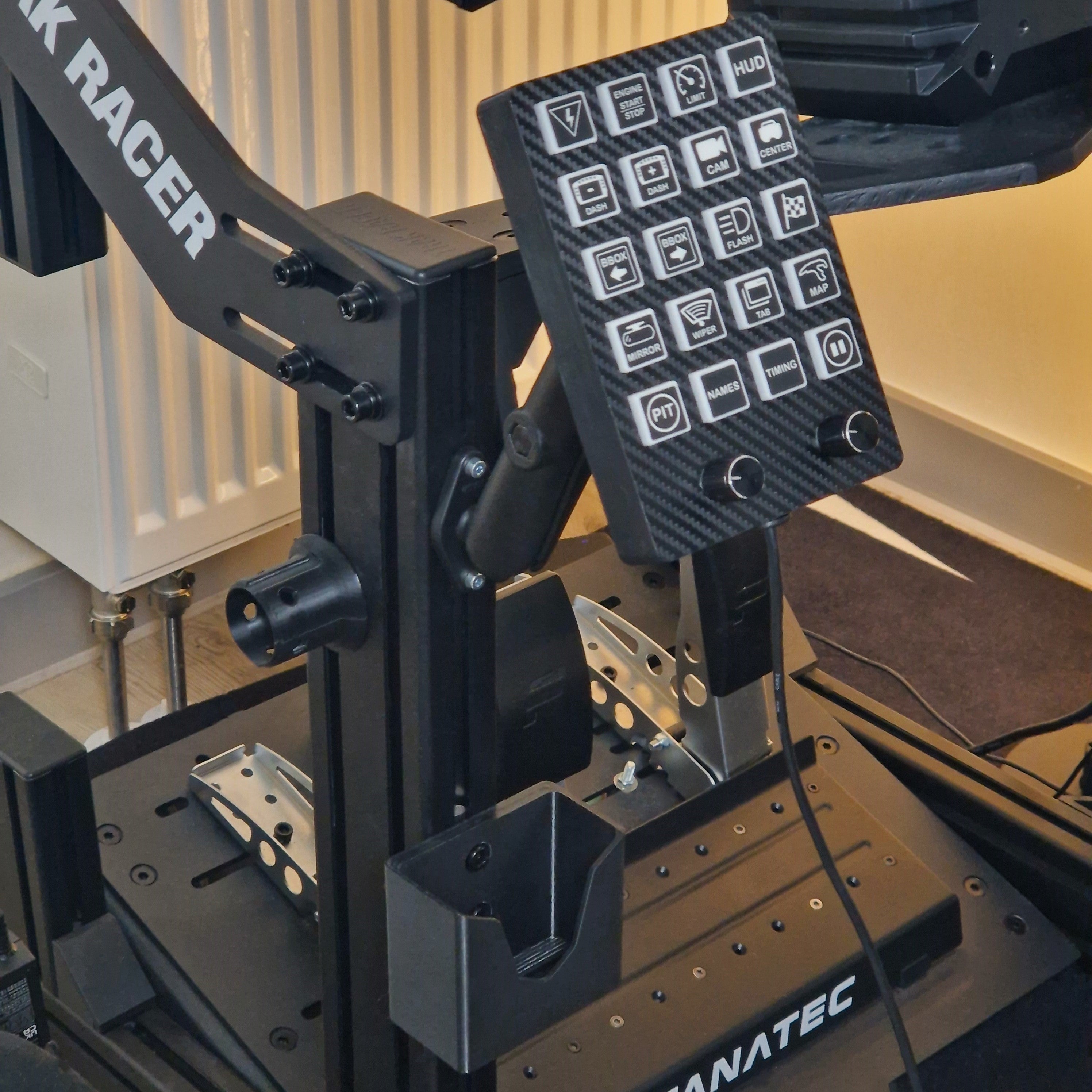 Directly mounted to your simracing setup so you never have to look for your keyboard while racing